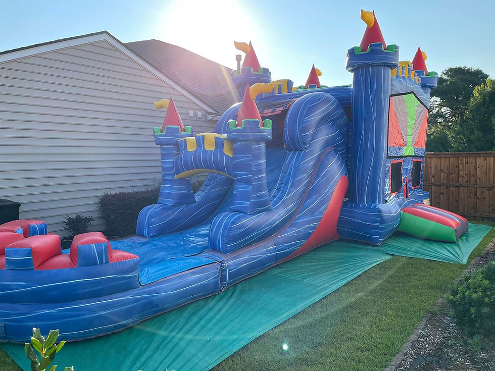 These units can be rented wet or dry! If rented wet there will be a soaker hose attached at the top of the water slide.